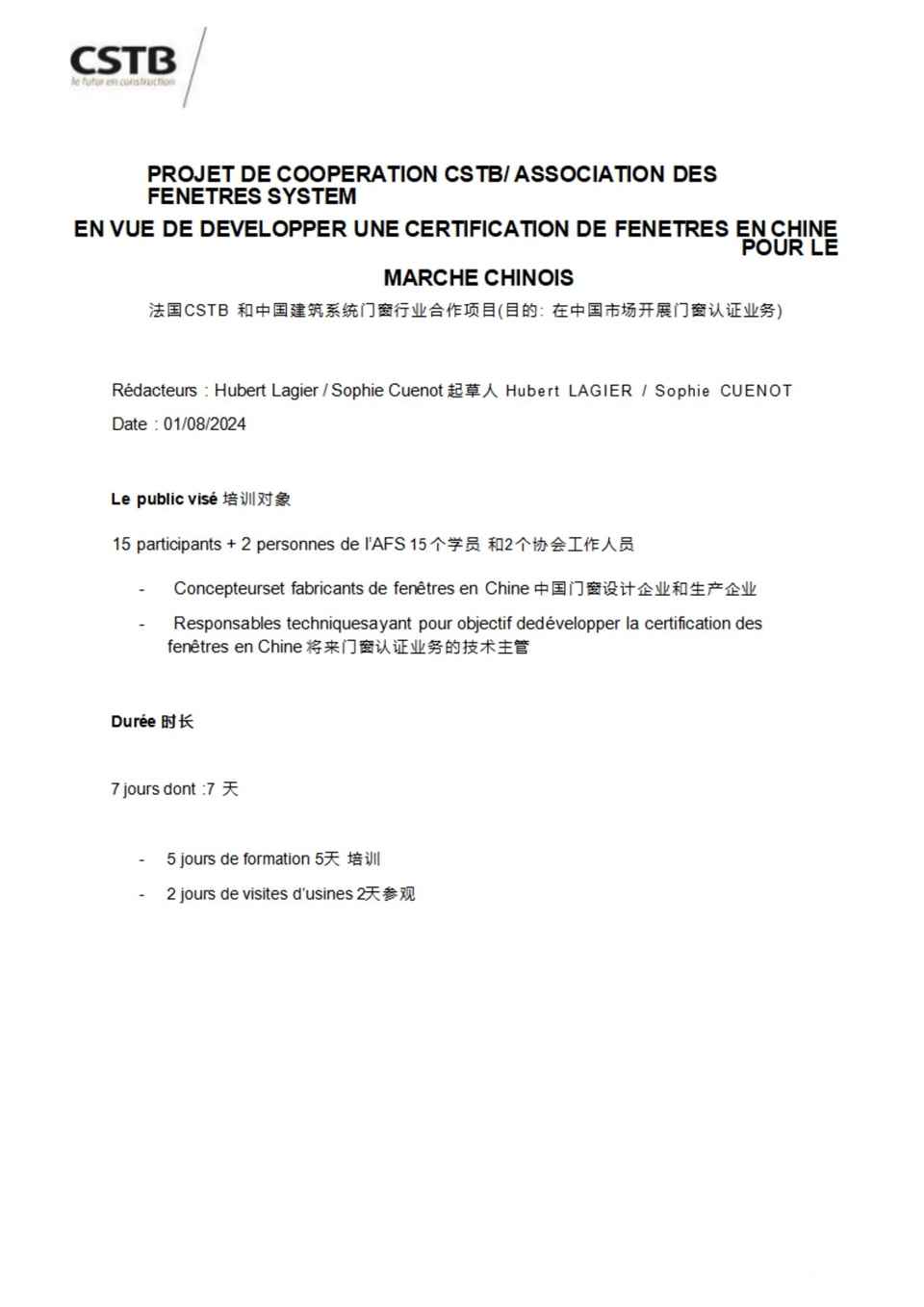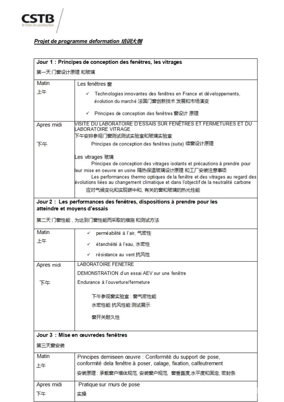 “第二期中歐系統門窗CSTB培訓班”計劃于2025年十月中下旬或2026年3月中下旬舉辦,已有8位學員預報名,每期只招收17(15+2)位學員。具體培訓時間待17(15+2)位學員全部報名結束后再和法國建筑科學研究確定。