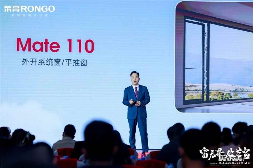 隨后,黃董在峰會現場,為大家揭幕2025年榮高門窗年度革新之作——Mate系列及視界65外開窗等9款新品!Mate系列全線升級,重新定義高端系統窗標桿;視界65外開窗以3.0mm型材壁厚融合航天級密封科技,成就美學與功能平衡的巔峰之選,開啟人居空間“窗見未來”的無限可能。