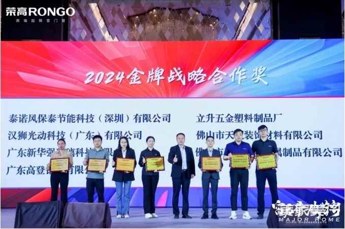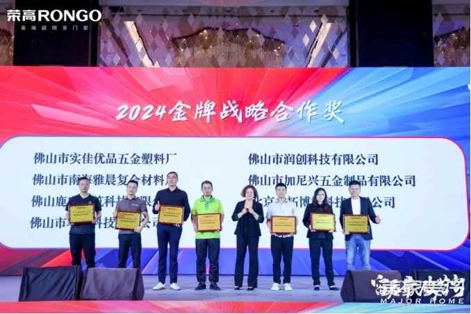 此外,榮高門窗特別為長期以來,并肩前行的供應商伙伴頒發榮譽獎牌,表達對合作伙伴堅守品質,鼎力相助的誠摯致敬。