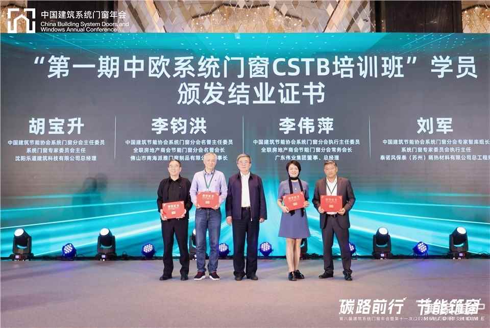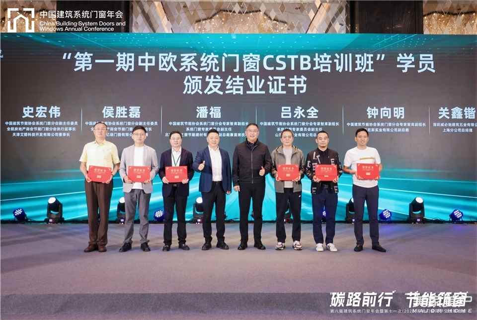 全聯(lián)房地產(chǎn)商會(huì)副秘書長(zhǎng)、中國建筑節(jié)能協(xié)會(huì)系統(tǒng)門窗分會(huì)顧問團(tuán)組長(zhǎng)邊東昱,全聯(lián)房地產(chǎn)商會(huì)節(jié)能門窗分會(huì)名譽(yù)會(huì)長(zhǎng)、中國建筑節(jié)能協(xié)會(huì)系統(tǒng)門窗分會(huì)名譽(yù)主任委員,北京米蘭之窗節(jié)能建材有限公司董事長(zhǎng)馬俊清上臺(tái)為中國建筑節(jié)能協(xié)會(huì)系統(tǒng)門窗分會(huì)副主任委員、全聯(lián)房地產(chǎn)商會(huì)節(jié)能門窗分會(huì)執(zhí)行監(jiān)事長(zhǎng)、天津艾隆科技開發(fā)有限公司董事長(zhǎng)史宏偉,中國建筑節(jié)能協(xié)會(huì)系統(tǒng)門窗分會(huì)副主任委員、全聯(lián)房地產(chǎn)商會(huì)節(jié)能門窗分會(huì)副會(huì)長(zhǎng)、山東佰億緣門窗有限公司總經(jīng)理侯勝磊,中國建筑節(jié)能協(xié)會(huì)系統(tǒng)門窗分會(huì)專家智庫副組長(zhǎng)、系統(tǒng)門窗專家委員會(huì)副主任、北京米蘭之窗節(jié)能建材有限公司副總裁兼首席技術(shù)官潘福,中國建筑節(jié)能協(xié)會(huì)系統(tǒng)門窗分會(huì)專家智庫副組長(zhǎng)、系統(tǒng)門窗專家委員會(huì)副主任、山東青建鋁業(yè)有限公司總經(jīng)理呂永全,中國建筑節(jié)能協(xié)會(huì)系統(tǒng)門窗分會(huì)專家智庫副組長(zhǎng)、軒尼斯實(shí)業(yè)有限公司副總裁鐘向明,深圳威必馳建筑五金有限公司上海分公司總經(jīng)理關(guān)鑫鍇六位學(xué)員頒發(fā)了“CSTB系統(tǒng)門窗認(rèn)證培訓(xùn)一期結(jié)業(yè)證書”。