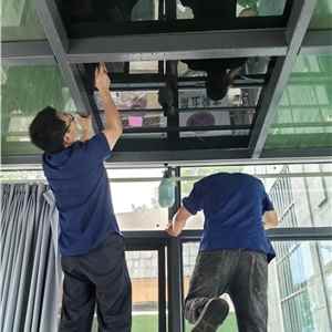 在施工過程中,膜先生團隊嚴格遵循標準化流程,根據博物館的特殊環境需求和環保要求,選用了高端恒溫功能膜的定制方案,使原來的玻璃形成了高效隔熱屏障。經專業機構檢測,其不僅具備 100% 紫外線阻隔能力,能過濾超 96% 紅外線,從根源阻斷熱量傳導,同時維持高透光率,確保館內光線充足柔和。