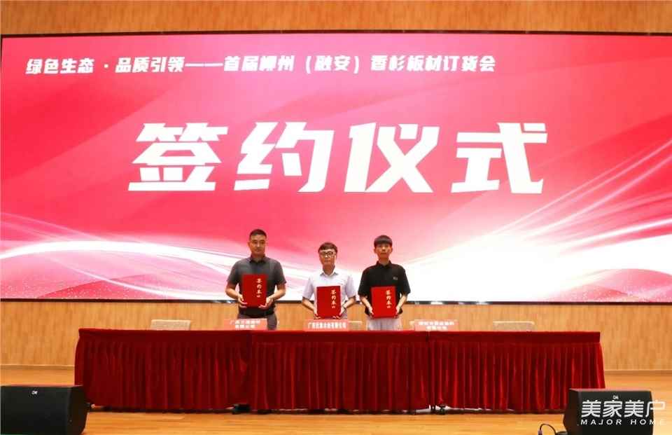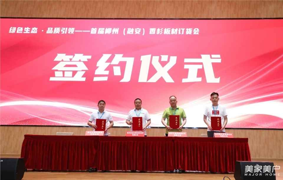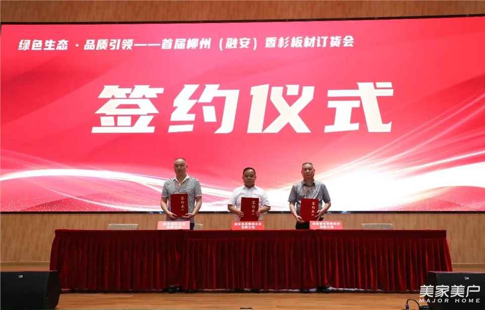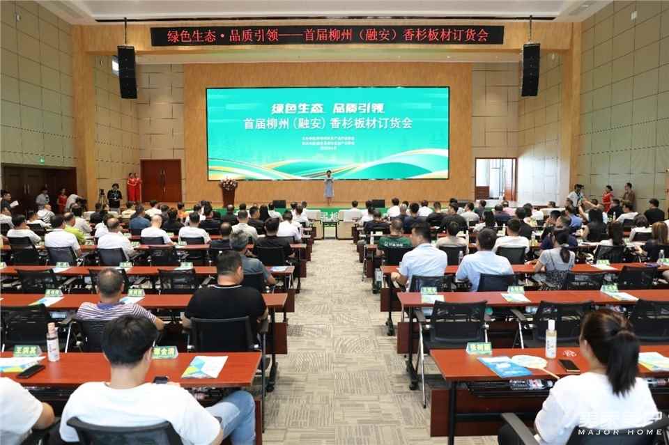 6月29日,首屆柳州(融安)香杉板材訂貨會在廣西融安縣啟幕。千年舟、莫干山等來自全國9省(自治區)20多個地級市的行業專家、企業代表齊聚“中國香杉板材之鄉”“中國香杉木生態板之都”,共探綠色家居新機遇,現場簽約金額達5.76億元。柳州市人民政府黨組成員袁東升,融安縣委書記于福堅,自治區林業局世界林木業邀商邀展組副組長曾昭意,廣西林業產業行業協會會長萬業靖,柳州市林業和園林局副局長歐日升,融安縣委常委、副縣長莫慧明,副縣長陳遠昭等出席活動。