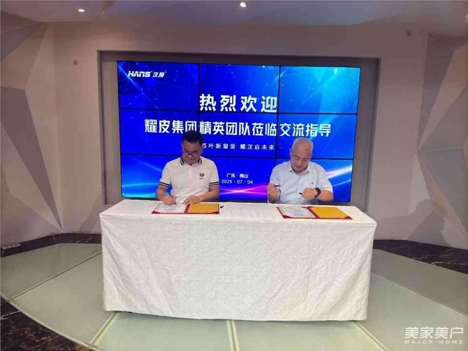 在雙方團隊見證下,江門耀皮總經理趙光豪與漢獅總經理蘇志揚鄭重簽署戰略合作協議。雙方高層確認戰略共識——此次合作不僅是國企資源優勢與民企創新活力的深度碰撞,更是響應國家“鏈動產業”戰略倡議的標桿實踐。
