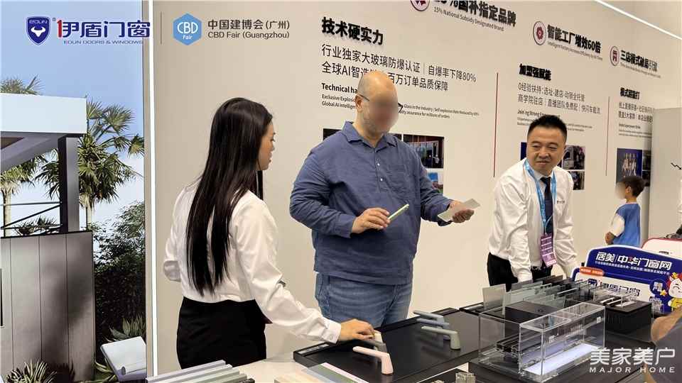 近年來,伊盾門窗持續推進品牌出海戰略,廣州建博會的智能新品也吸引了大量外國客商駐足咨詢,深入交流伊盾產品技術與未來合作可能,讓以伊盾為代表的中國高品質門窗實現世界共享!