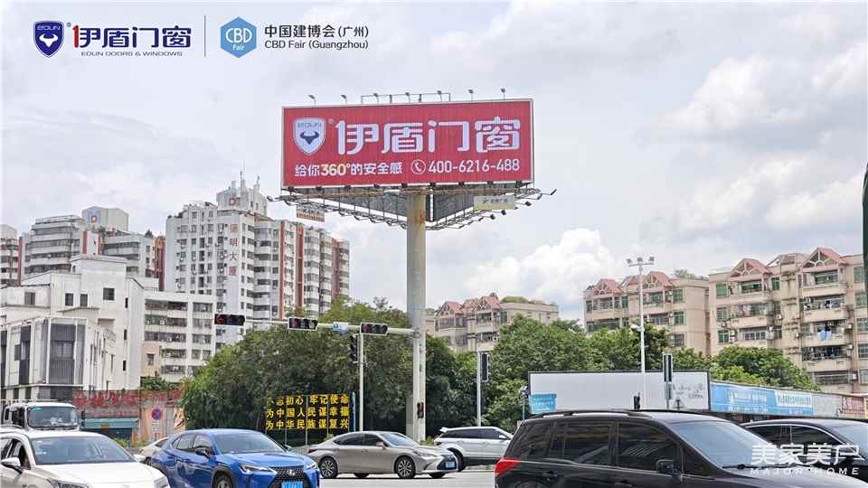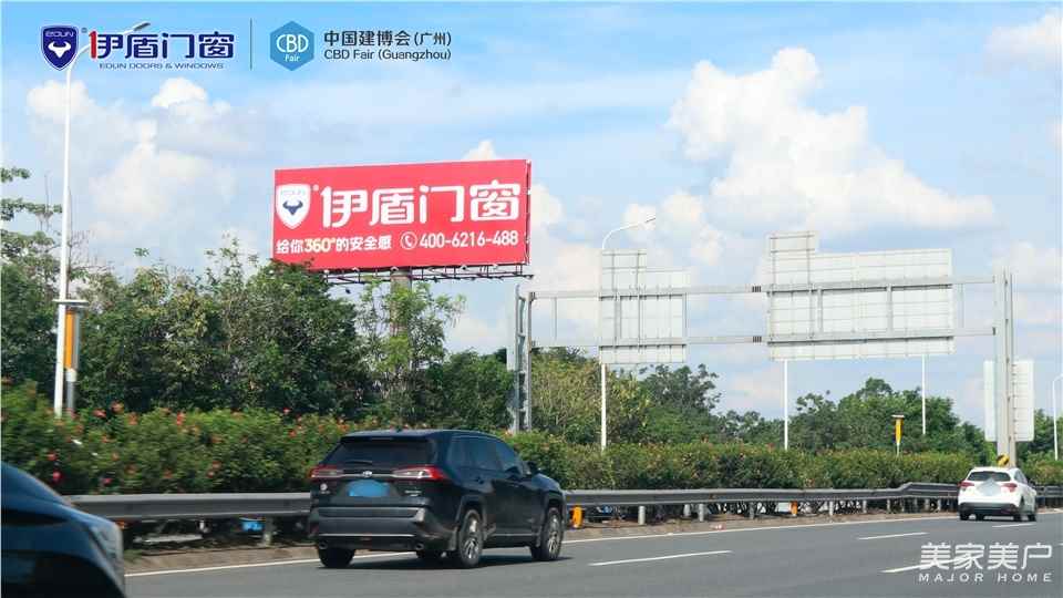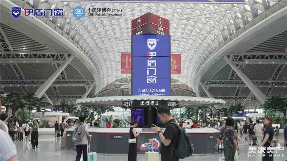 廣州建博會期間,伊盾門窗更斥巨資在廣交會展館、廣州南站、多個高速樞紐投放廣告,多點位同頻上新,伊盾品牌硬核實力強勢出圈。