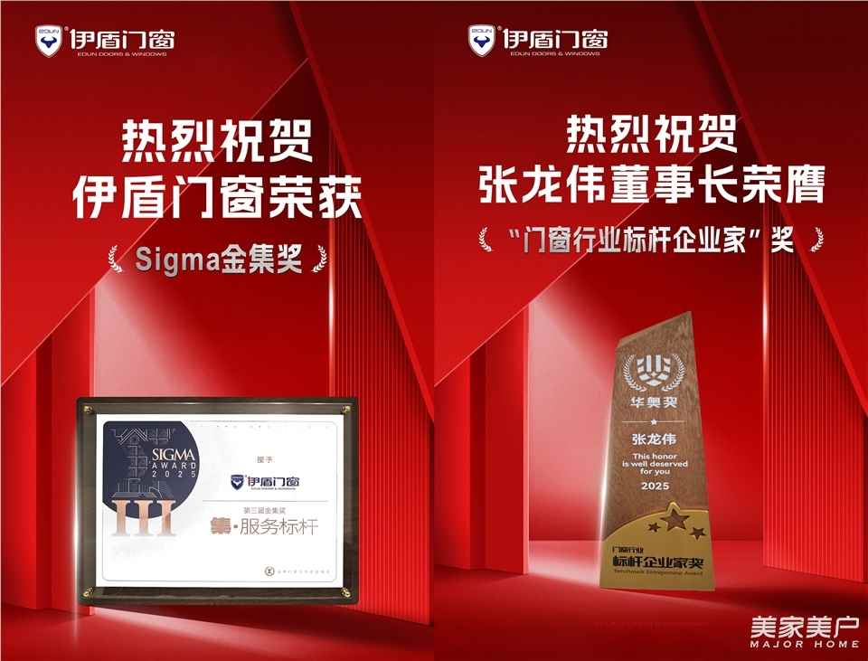 同時,伊盾門窗憑借卓越服務斬獲金集獎“集服務標桿”獎,卓越產品力與品牌影響力再獲權威背書。董事長張龍偉更憑借卓越的領導力、前瞻的戰略眼光和對行業高質量發展的突出貢獻榮膺“門窗行業標桿企業家”大獎!