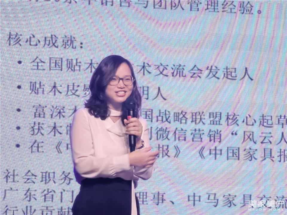 廣東省富深化學有限公司副總經理趙麗華在“貼木皮常見問題及解決方案”的分享中,結合大量實操案例,詳細剖析了貼木皮過程中易出現的各類問題成因,并給出了針對性的解決策略,為提升產品品質提供了實用指導。