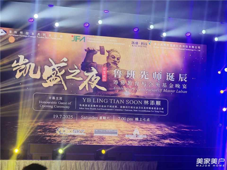 7月19日當晚,馬來西亞2025魯班先師誕辰慶典隆重啟幕。大會籌委會主席王成勇,大會主席李益榮,馬來西亞家具總會總會長陳文海,柔佛州家具同業聯合會會長黃友歡,馬來西亞柔佛州行政議會衛生及環境委員會主席、州議員林添順等嘉賓在致辭中一致表示,將傳承魯班精神,推動家具業創新合作,深化馬中家具產業聯動,共促行業國際化進程。