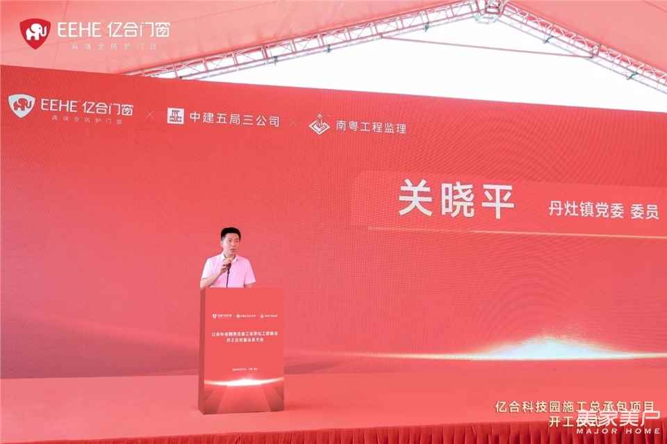 丹灶鎮黨委委員關曉平在講話中指出,億合科技園施工總承包開工,不僅體現了企業對丹灶投資環境的認可,更彰顯了企業扎根丹灶、長遠發展的決心,也必將為丹灶智能安全應急產業、門窗行業的高質量發展注入新動能。希望億合門窗以建設億合科技園為契機,積極整合行業大中小企業資源,帶動產業鏈上下游企業集聚入園、協同發展;充分發揮龍頭引領作用,推廣“三防三隔”+“匠心交付”的6+1全防護體系新標準,大力應用綠色節能新材料、新技術,推動門窗產業智能化、綠色化轉型,引領行業發展潮流的同時,也為全鎮建筑外窗工程質量提升貢獻更大力量。
