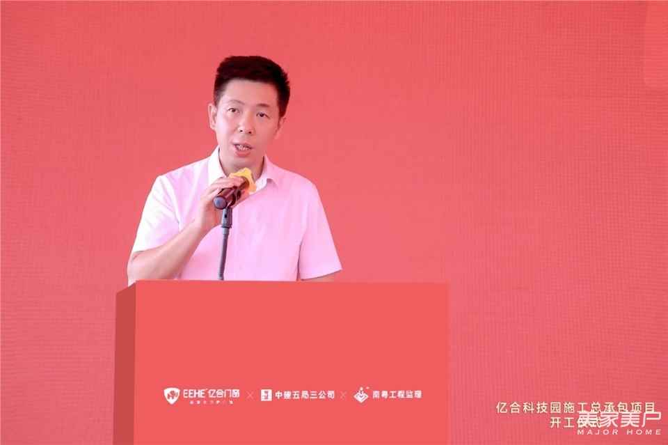中建五局三公司基礎設施公司黨委書記、總經理李尚在講話中表示,作為項目承建方,參與億合科技園項目建設使命光榮、責任重大。中建五局三公司將堅持“以客戶為中心”、“以項目為中心”的管理理念。從前期策劃到竣工驗收,從重大節點到日常施工協調,提供全天候、全方位服務,建立高效順暢的溝通機制,及時滿足項目需求,助力億合科技園早日建成投產,必將把億合科技園項目打造成為質量一流、技術領先、綠色智能、安全高效的精品工程,樹立區域高端門窗產業基地新標桿并以此為依托,為推動當地產業升級、集聚配套資源、促進區域經濟高質量發展貢獻積極力量。