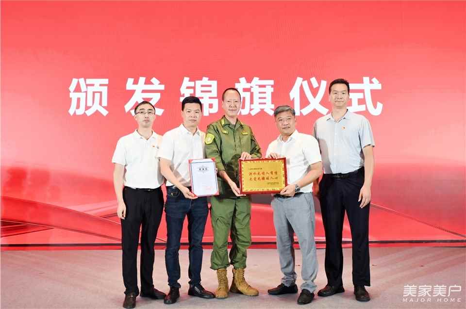 多年來,廣東省門業協會與佛山市南獅退役軍人志愿救援隊一直保持著良好的溝通與互動,全力支持應急救援工作,并聯動會員單位向受災地區捐贈物資。晚宴現場,廣東省門業協會黨支部書記、佛山市南獅退役軍人志愿救援隊隊長馬建華向協會授予錦旗,并代讀貴州榕江抗洪搶險表揚信,感謝廣東省門業協會全體會員在危難時刻的火速馳援。