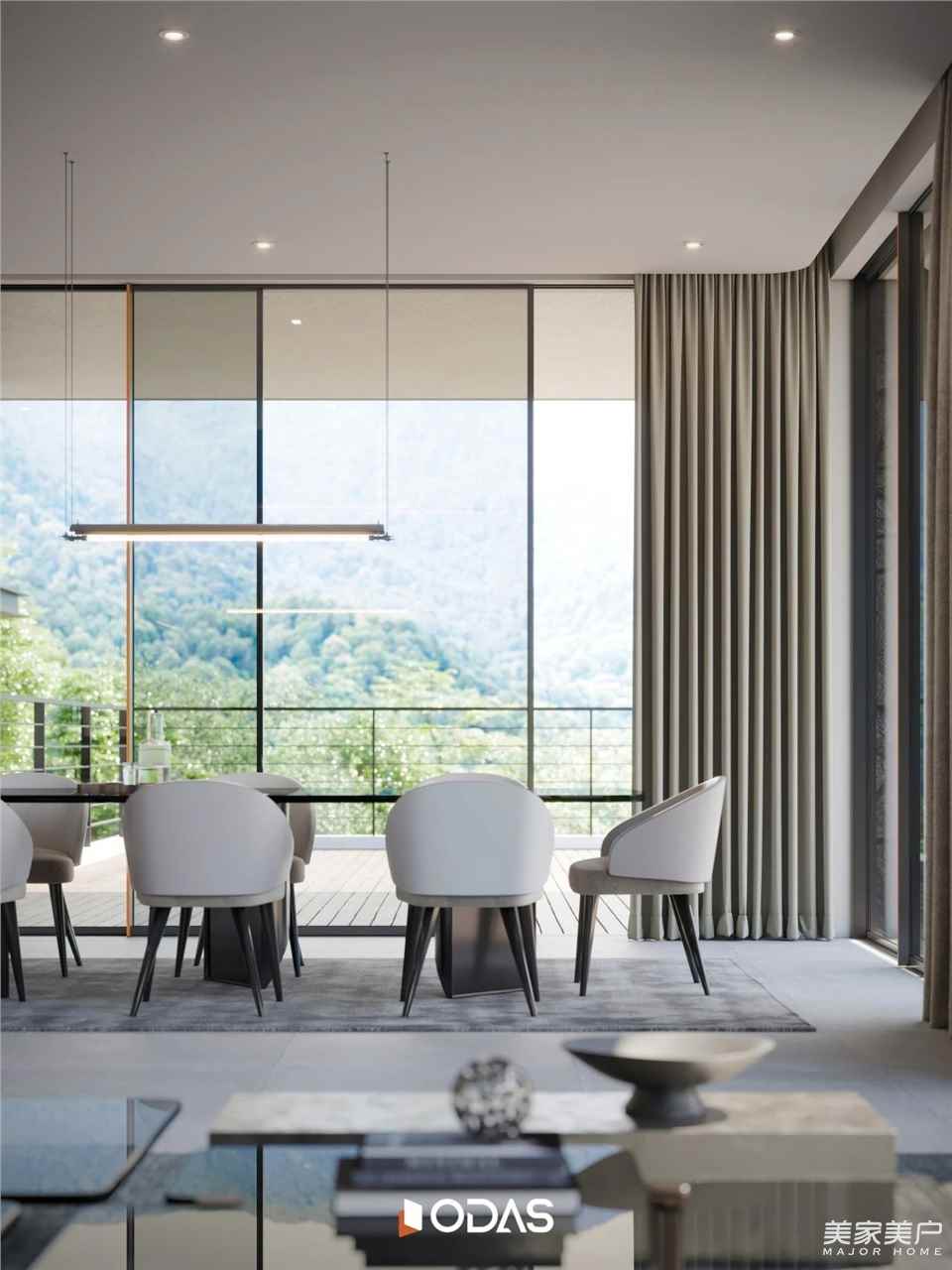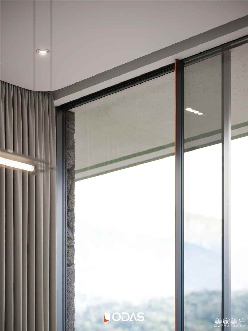 ☆門窗選型與空間功能協同整合,功能導向的門窗選擇。根據別墅各個空間的不同功能特點,選擇與之相適應的門窗類型和產品。如全景區域需要視野開闊、承重能力強的門窗,因此選用歐大師攬勝138全景推拉門;廚房側門注重通風、采光以及安全耐候,則匹配歐大師攬光85外平開門。通過這種功能導向的門窗選型方式,使門窗成為空間功能的有機組成部分,提升整體空間的使用價值。