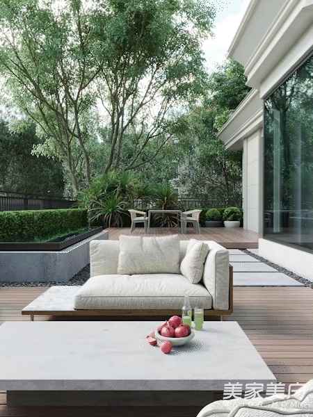 重塑會(huì)呼吸的庭院,帶給居者內(nèi)心豐盈舒展,構(gòu)建向往的生活樣本。茂密植被、藍(lán)天碧霞、喝茶閑坐、日出日落……推開門窗,巨大庭院讓空間更顯通透,室內(nèi)外景致相映成趣,隨意安置椅子便可隨處休憩,于此泡茶話仙,聽曲覽書,家成為隔開喧囂的自在之所。