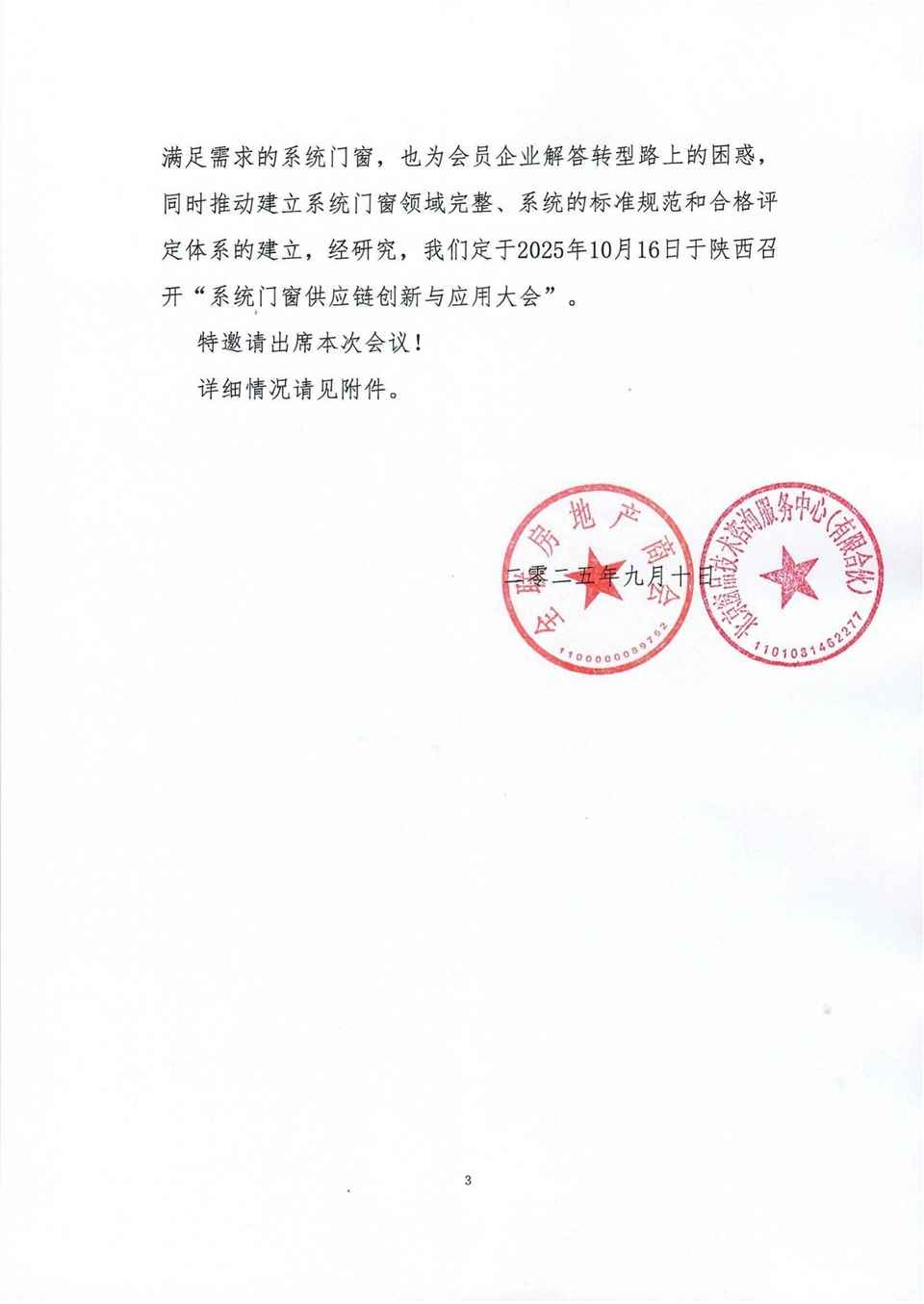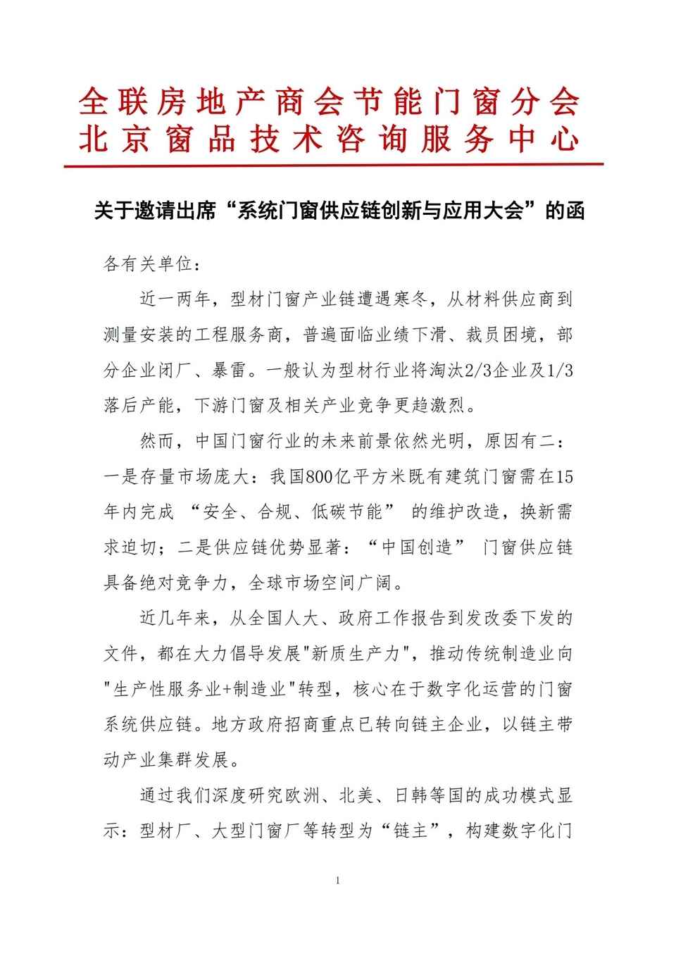 關于邀請出席“系統門窗供應鏈創新與應用大會”的函