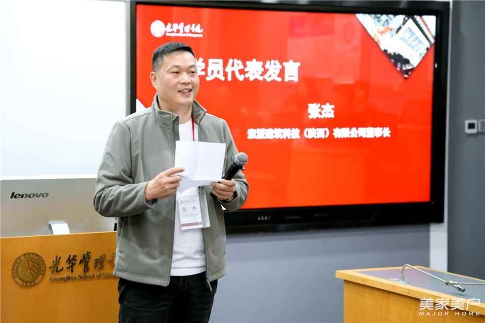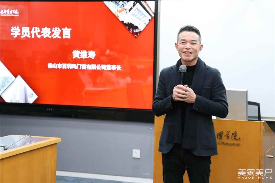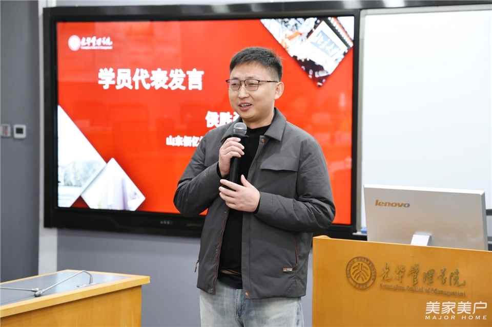 11月18日上午,首先舉行了開班式。北京大學光華管理學院副院長張圣平教授致辭歡迎同學們的到來。接著,全聯房地產商會節能門窗分會副會長、中國建筑節能協會系統門窗分會副主任委員、山東佰億緣門窗有限公司董事長侯勝磊,全聯房地產商會節能門窗分會副會長、佛山市門窗行業協會聯席會長、佛山市百利瑪門窗有限公司董事長黃維壽,全聯房地產商會節能門窗分會副會長、中國建筑節能協會系統門窗分會副主任委員、陜西省建筑節能協會高性能門窗幕墻專委會會長、素派建筑科技(陜西)有限公司董事長張杰代表新同學發言。
